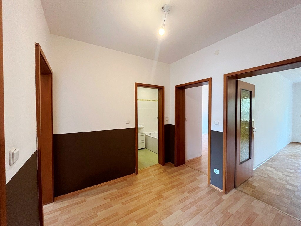 Nach Durchschreiten der Wohnungseingangstüre im Erdgeschoss befinden Sie sich in der Diele der rund 84 m² großen 3-Zimmer-Wohnung.