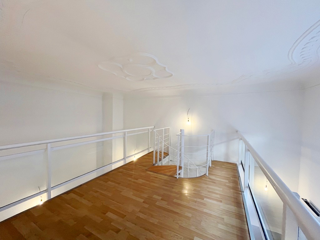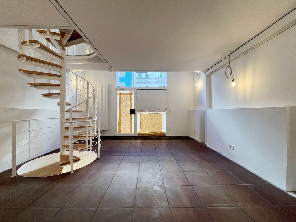 Die Ladenflächen unterteilen sich in ca. 28 m² Verkaufsfläche im Erdgeschoss zzgl. einer Galerieebene, die über eine klassische Wendeltreppe mit Holzstufen erreichbar ist.