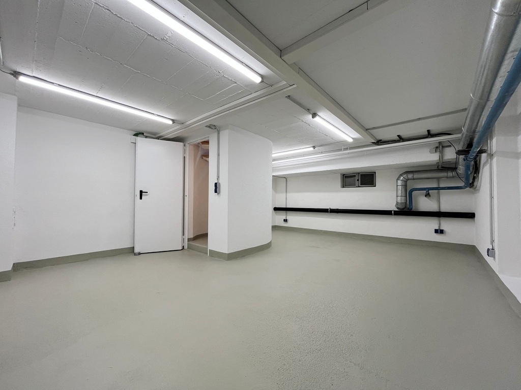 Die Souterrainfläche mit knapp 25 m² eignet sich ideal als Lagerraum. Im Souterrain befindet sich ein Waschbecken sowie der Zugang zu einem modernen Sanitärraum, welcher den Gewerbemietern zur Verfügung steht.