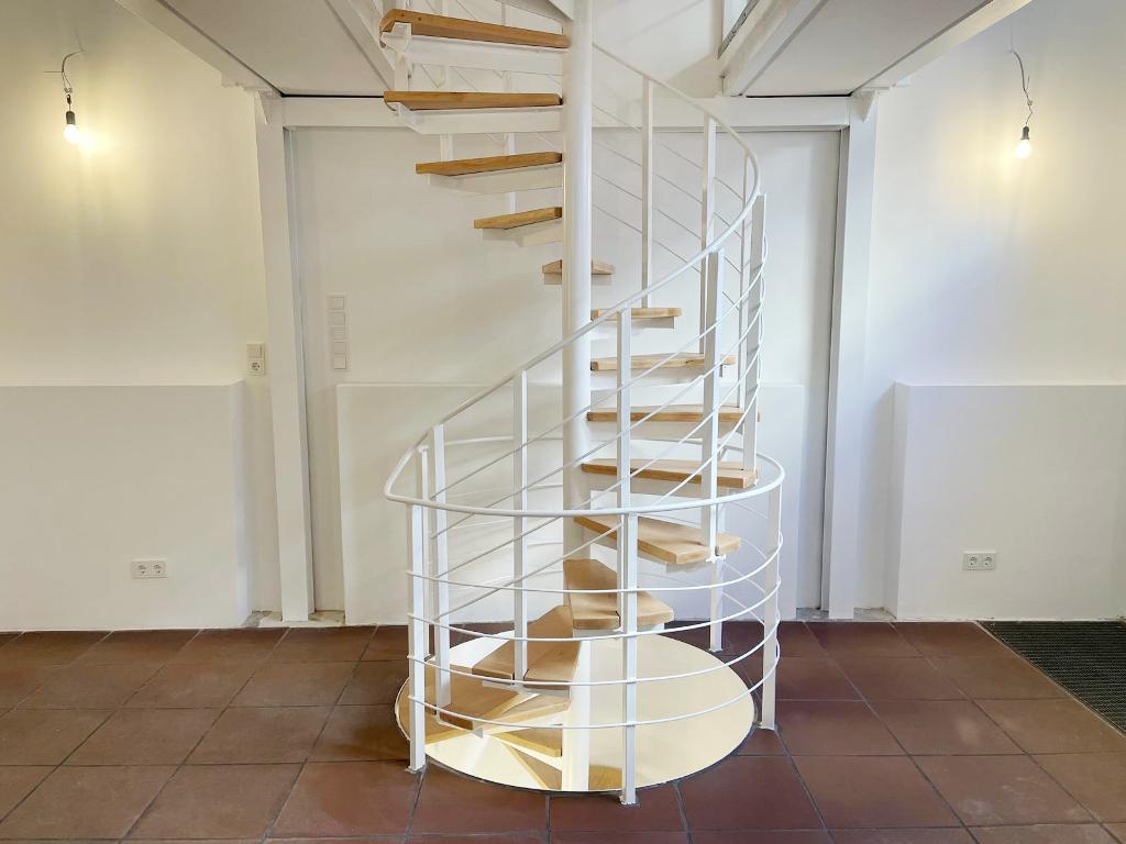 Zusätzlich zu den erdgeschossigen Flächen erreicht man das Souterrain ebenfalls über die gewendelte Stahltreppe.