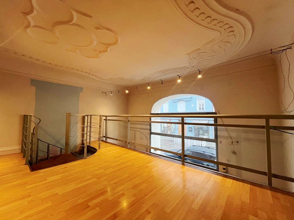 Die Ladenflächen unterteilen sich in ca. 28 m² Verkaufsfläche im Erdgeschoss zzgl. einer Galerieebene, die über eine klassische Wendeltreppe mit Holzstufen erreichbar ist.