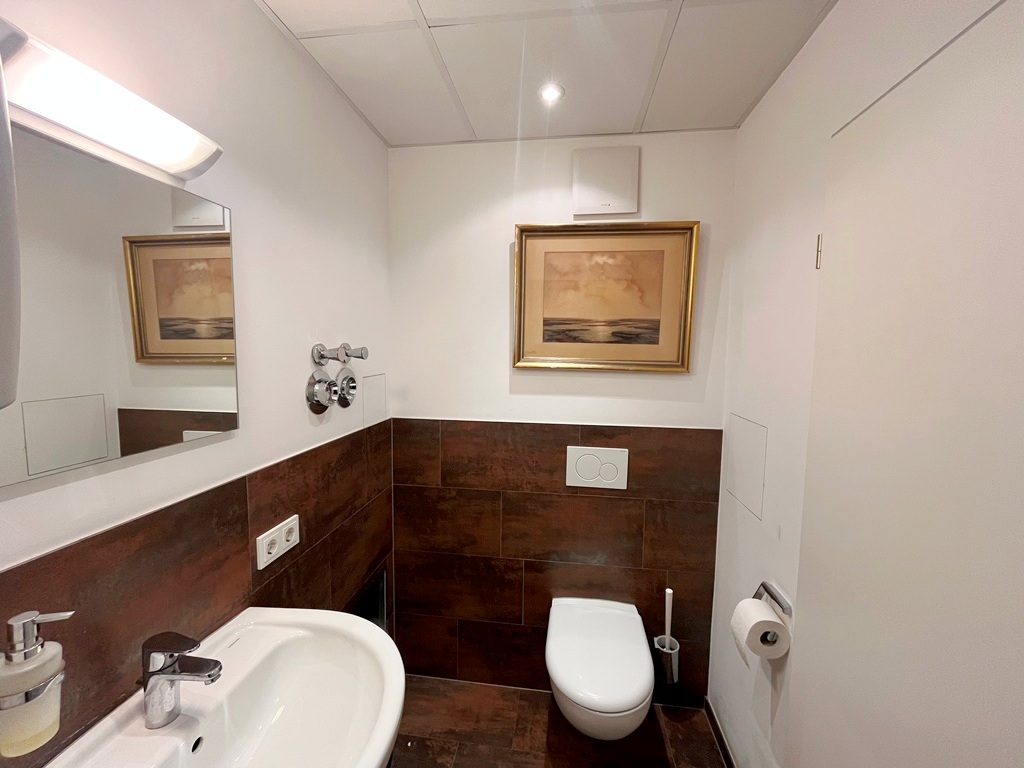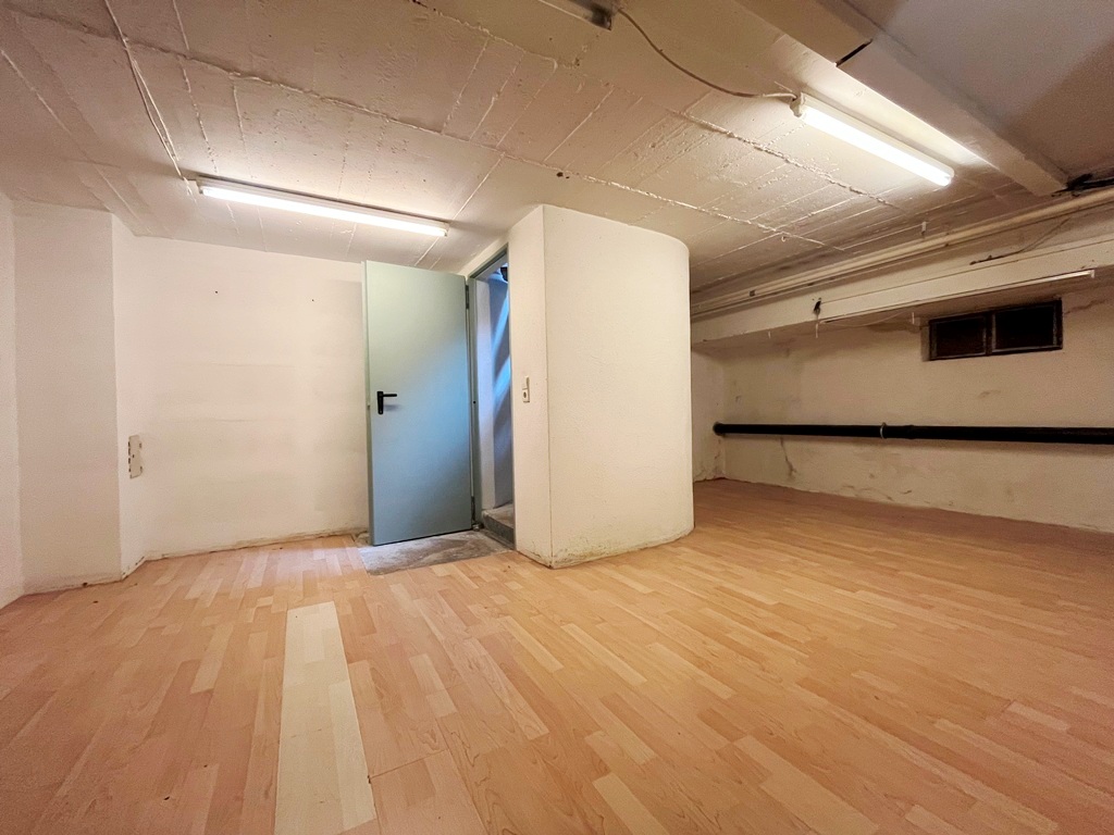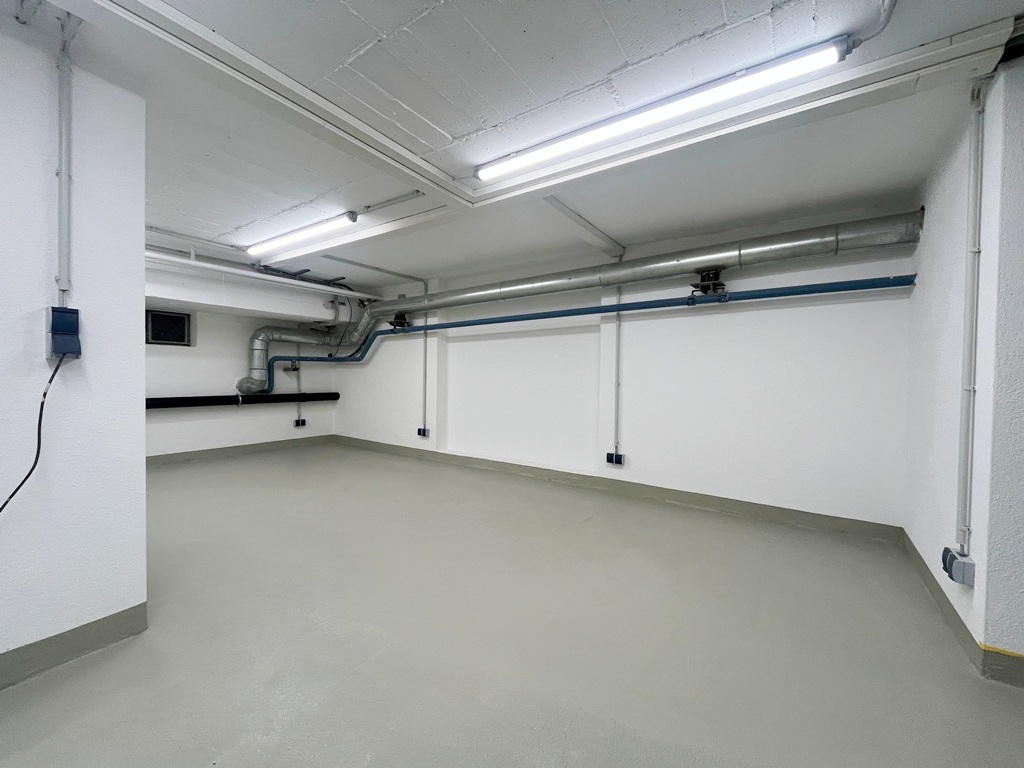 Die Souterrainfläche mit knapp 25 m² eignet sich ideal als Lagerraum. Im Souterrain befindet sich ein Waschbecken sowie der Zugang zu einem modernen Sanitärraum, welcher den Gewerbemietern zur Verfügung steht.