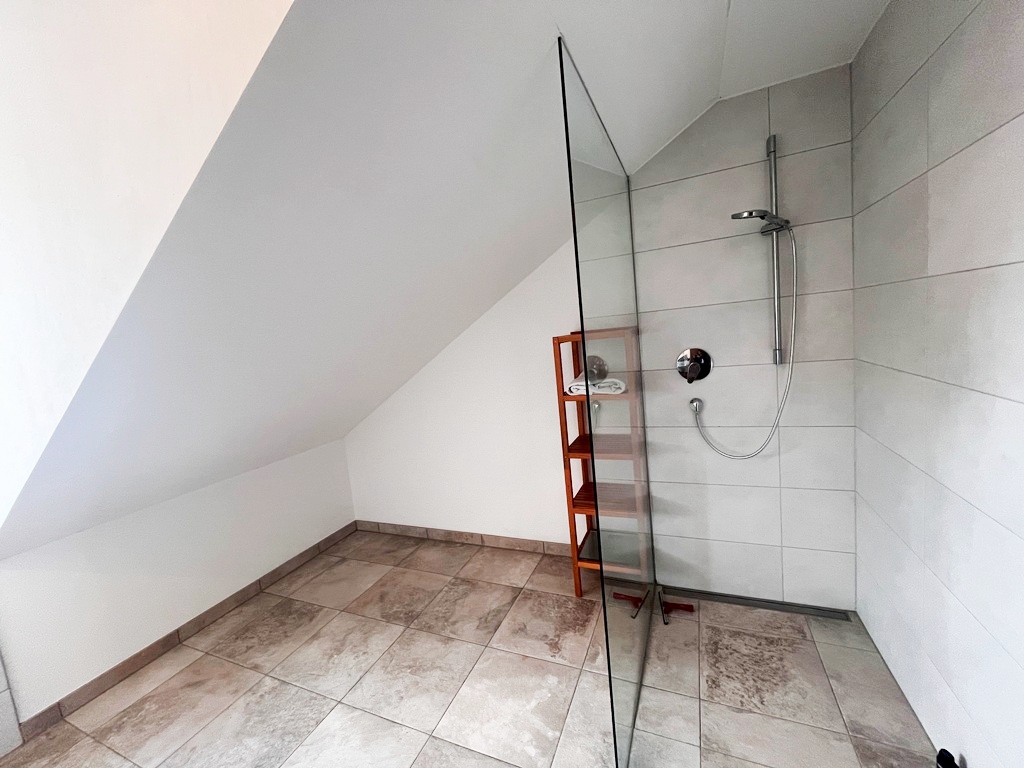 Ein weiteres Highlight des Hauses bildet das 2. OG (Dachgeschoss) mit einem Studio von rund 20 m² Fläche, einem Gästezimmer von ca. 12 m² Fläche sowie einem Duschbad mit bodengleicher Dusche, WC und Waschbecken mit knapp 5 m².