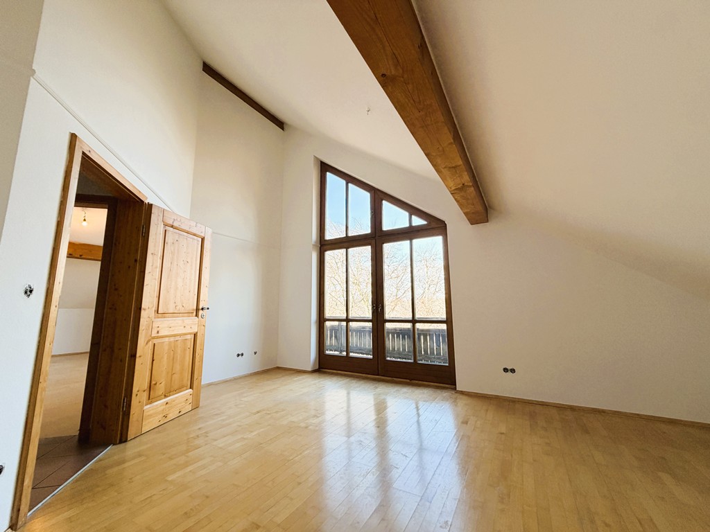Die beiden Schlafräume sind großzügig geschnitten und mit teils deckenhohen Fensterelementen versehen. Die Räume haben Größen von ca. 17,0 m² und ca. 22 m² Fläche! Die Deckenhöhe beträgt bis zu 3,8 m! Zusätzlich haben die beiden Schlafzimmer eine Austrittsmöglichkeit auf einen etwa 11 m² großen West-Balkon mit malerischem Blick ins Isartal!