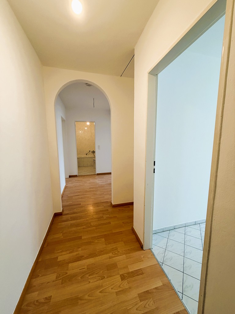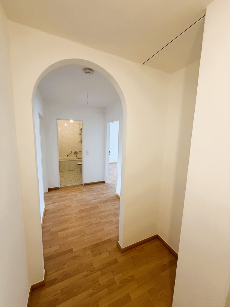 Nach Durchschreiten der Eingangstüre befinden Sie sich im Flur, von dem Sie die Küche ohne Einbauten sowie eine kompakte Garderobennische erreichen.