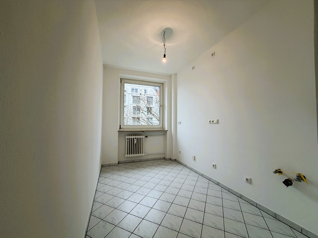 Die knapp 8 m² große Küche ist klassisch hell gefliest und verfügt über ein Fenster. Eine Einbauküche ist nicht vorhanden und kann vom Mieter nach eigenem „Gusto“ installiert werden.
