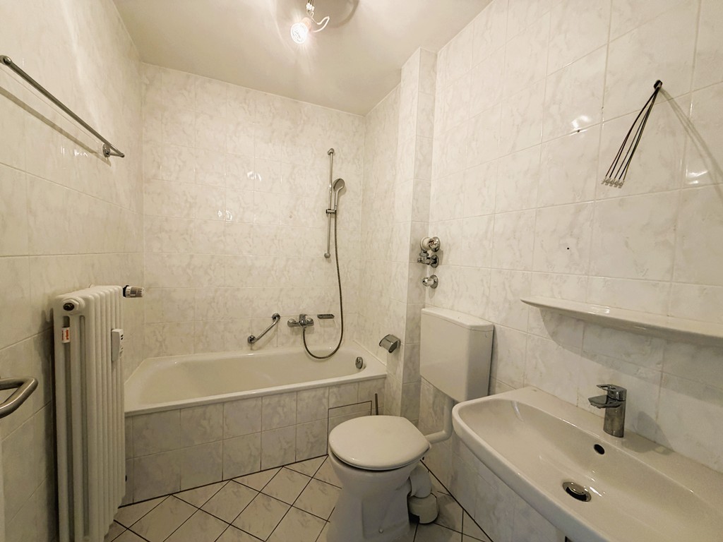 Last but not least ist ein Badezimmer über die Diele erreichbar. Der Sanitärraum ist mit hellen Boden- und Wandfliesen bestückt. Das Bad ist mit einer Badewanne, einem WC und einem Waschbecken ausgestattet.